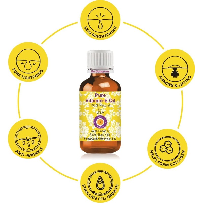 Deve Herbes Pure Vitamin E Oil with Glass Dropper Natural Therapeutic Grade 50ml (1.69 oz)