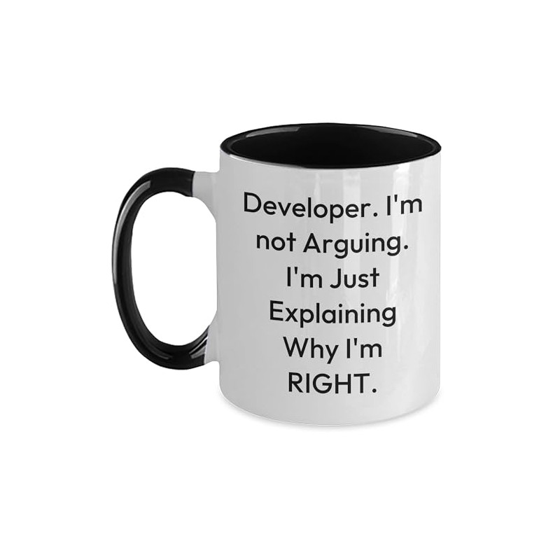 • So, what are you waiting for? Get your 'Developer. I'm Not Arguing. I'm Just Explaining Why I'm Right' Two Tone Coffee Mug today and make it a holiday to remember for the special Developer in your life!