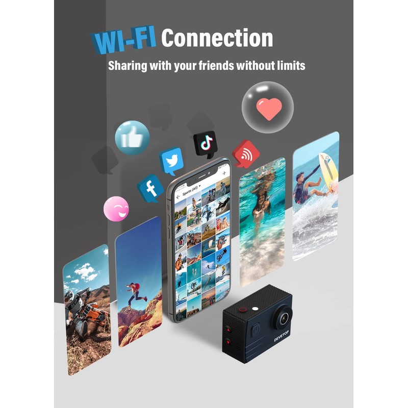 - [4K 20MP/Multifunktion]: Die DEVETOP Actioncam bietet professionelle 4K/30fps Videos und eine Bildauflösung von 20M. Es kann auch mehr Funktionen mit dieser Sportkamera erkunden, wie Loop-Videoaufnahme, Zeitraffer-Fotografie, Zeitlupe, Selfies, Serienaufnahmen, Fahrmodus usw. Es ermöglicht Ihnen, alle Details Ihrer Abenteuer festzuhalten und erfüllt die Aufnahmebedürfnisse verschiedener Szenen.