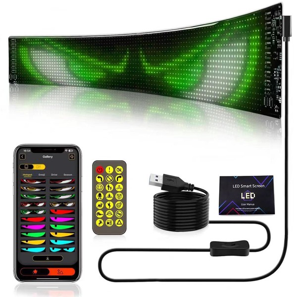Devil Eye Light for Car LED Matrix Large Programmable Flexible LED Display Screen, High Brightness, High Pixel, with App and Remote Control, Ideal for Car Window, Advertising, Music Festival 1PC 17.3