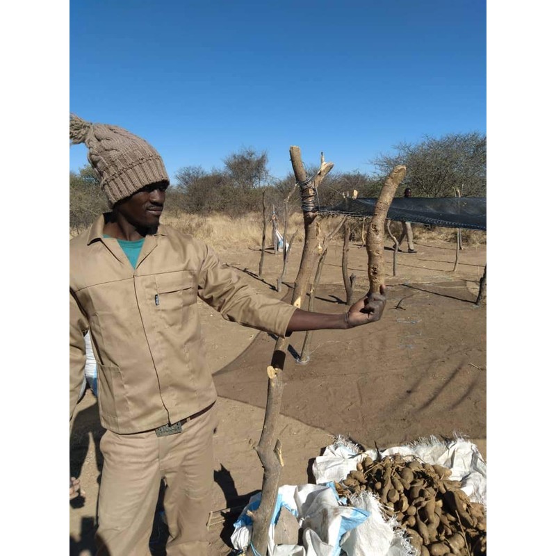 - The secondary storage roots are harvested sustainably by the Bushmen (San) without damaging the plant. No predatory exploitation of nature!