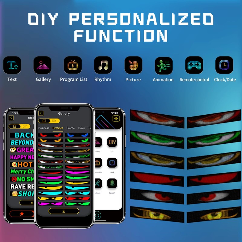 - Unlimited Customization: Unleash your creativity with our mobile app, compatible with iOS and Android! Connect via Bluetooth and explore endless customization options—edit scrolling text, create your own designs, or upload personalized images and GIFs. Turn your car into a dazzling DIY light show that showcases your unique style.