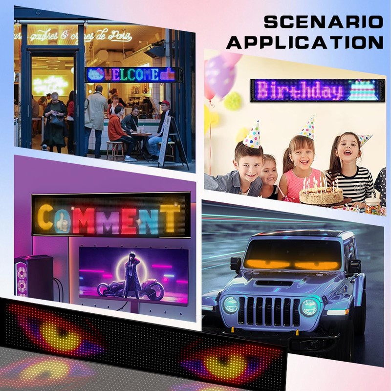 - Suitable for Any Occasion: Enhance the festive atmosphere for Christmas, Halloween, Easter, and more! Our dynamic LED display is not only suitable for cars; it is also perfect for bars, restaurants, shops, street vendors, parties, concerts, and even wedding decorations.