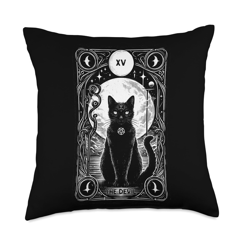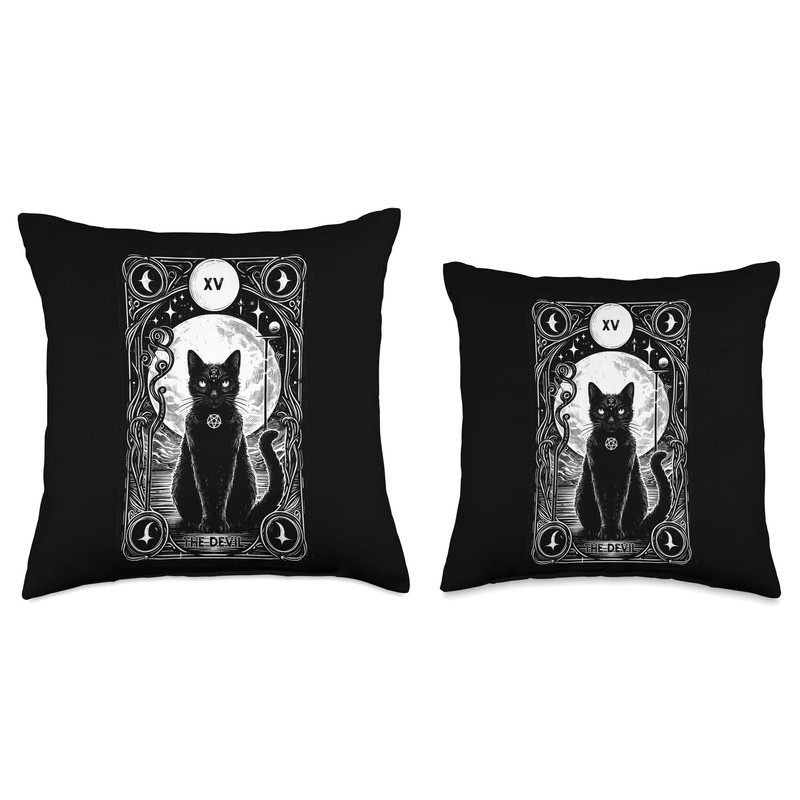 Devil Tarot Card Arcana XV Cat Satanic Major Arcana Funny Throw Pillow