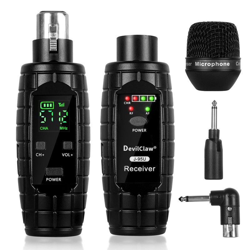 Devilclaw UHF Wireless Microphone System,Transmitter and Receiver XLR Adapter for Dynamic Microphones, Guitar, Mixer, PA System, 16 Adjustable Frequencies, USB Charge, 250ft Range