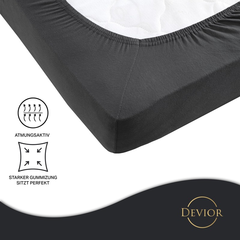 Devior Jersey fitted sheet, 180 x 200 - 200 x 200 cm, anthracite, bed sheet 100% cotton, up to 22 cm mattress height elastic band, Oeko-Tex made in green, fitted sheets, linen mattress cover 180 x 200