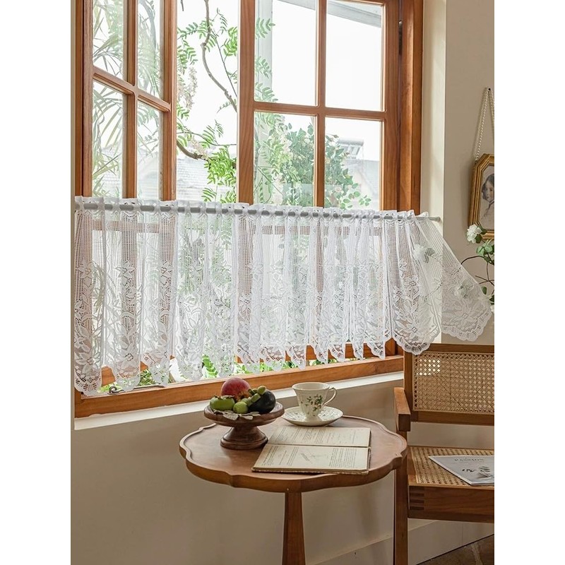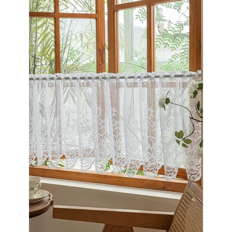 - Elegant design: the curtain is presented in French country house style with beautiful floral motifs on the panel curtain. The entire window decoration is characterised by a filigree hole pattern, with the lower part having an elegant arch shape that combines beauty and harmony.
