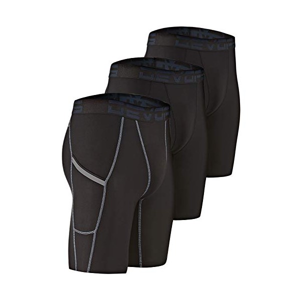 DEVOPS Men's Compression Shorts Underwear with Pocket (3 Pack) (Small, Black/Black/Black)