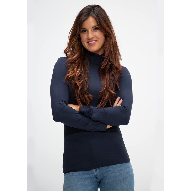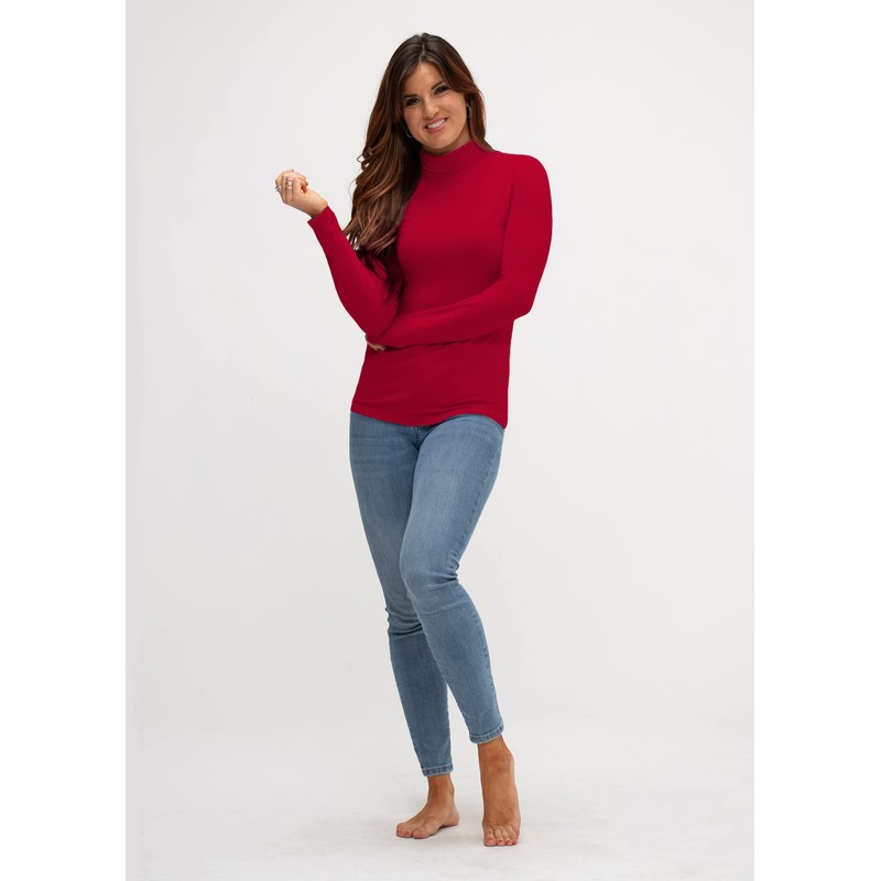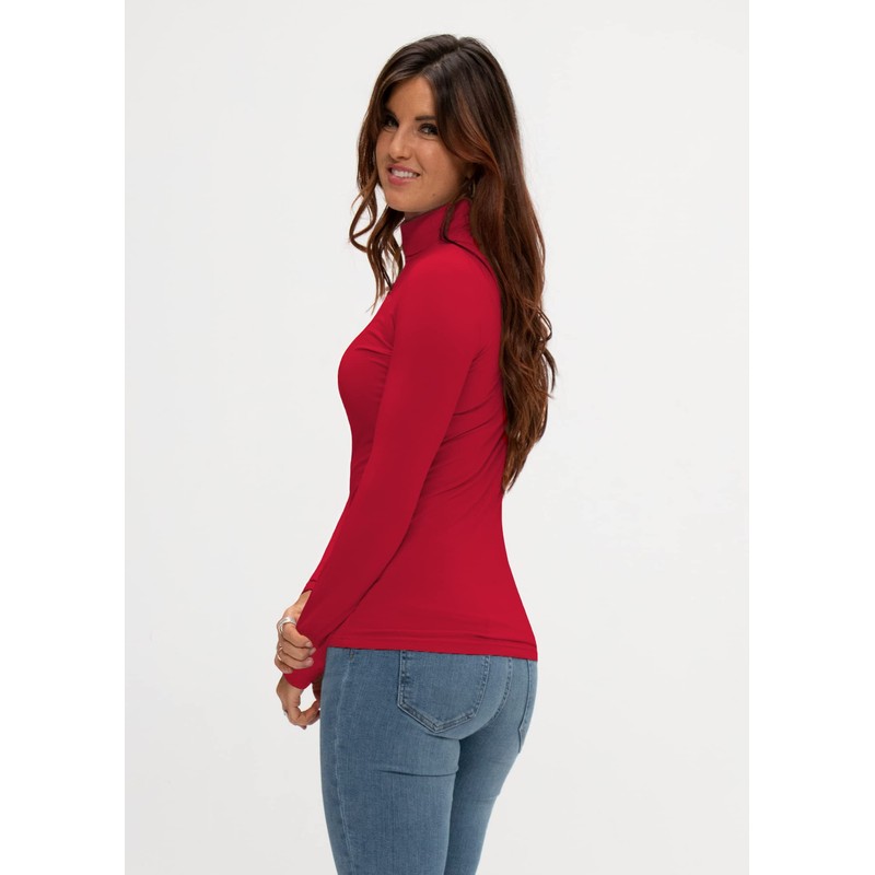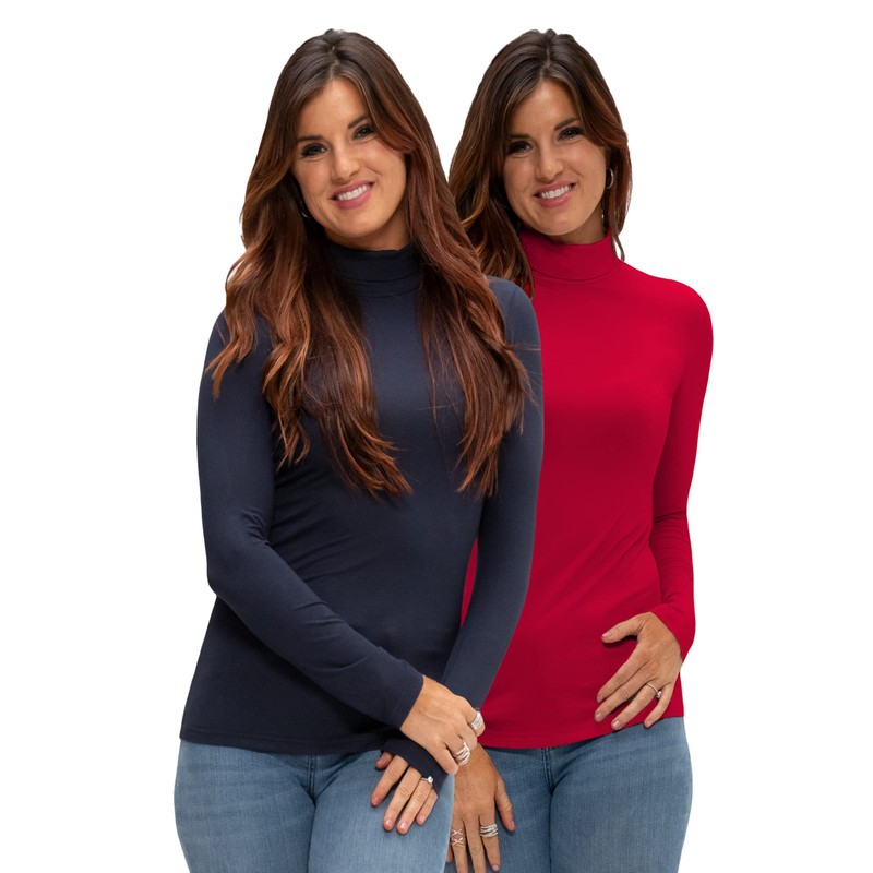 DEVOPS Womens 2 Pack Long Sleeve Mock Turtleneck Stretch Fitted Thermal Underlayer Shirts (Navy/Red, Small)