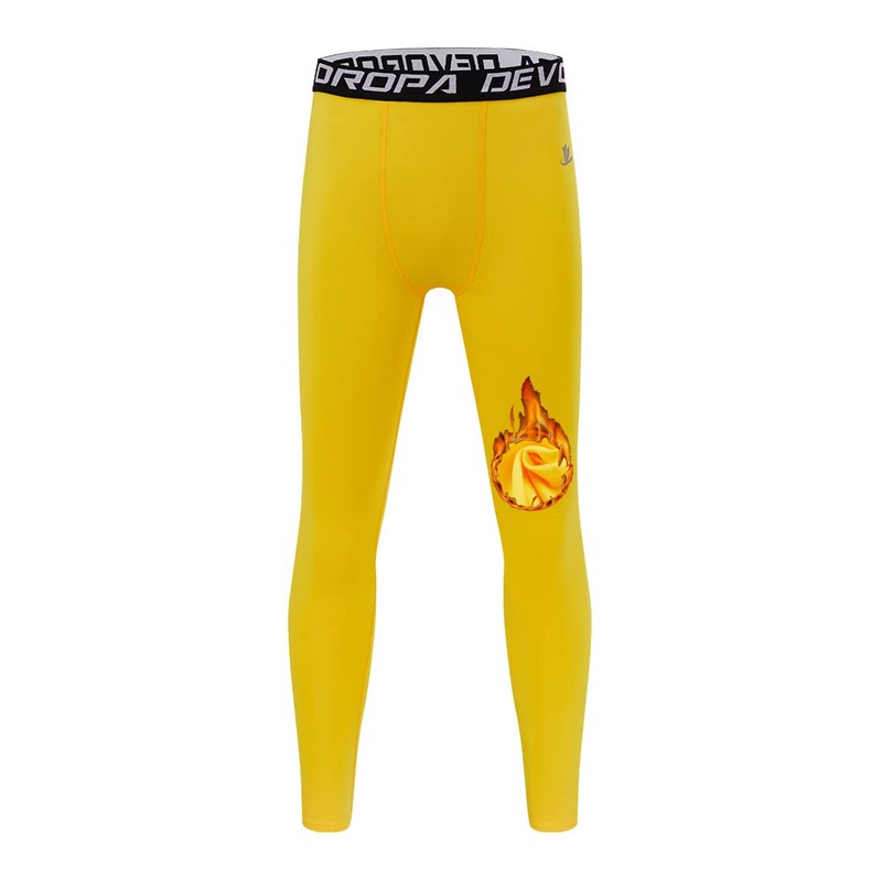 DEVOROPA Youth Boys' Compression Leggings Sports Tights Fleece Lined Thermal Base Layer Pants Yellow XS