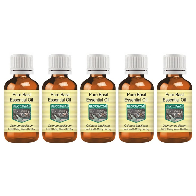 Devprayag Pure Basil Essential Oil (Ocimum basilicum) Natural Therapeutic Grade Steam Distilled (Pack of Five) 100ml X 5 (16.9 oz)