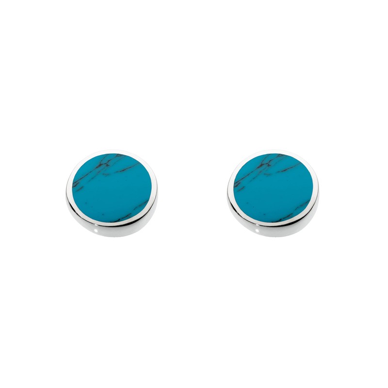 • Simple everyday studs, these round disc shaped gemstone earrings are inlaid with smooth, polished synthetic turquoise