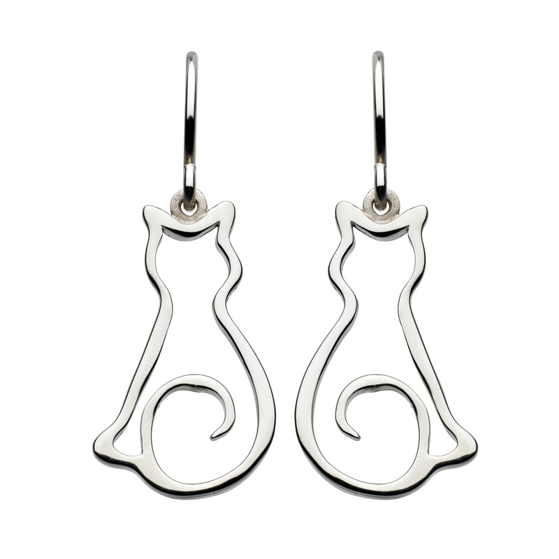 - These contemporary stylised cat outline drop earrings are made in solid sterling silver, perfect for all feline friends out there