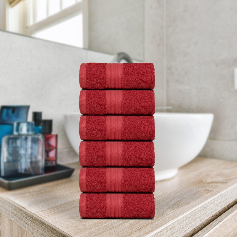 Dewall Maisons Sophisticated Dark Red 6-Piece Hand Towel Set - Plush Cotton, Ideal 16" x 28" Size - Luxurious, Absorbent, Perfect for Body, Face, Hands - Stylish Bathroom Essential
