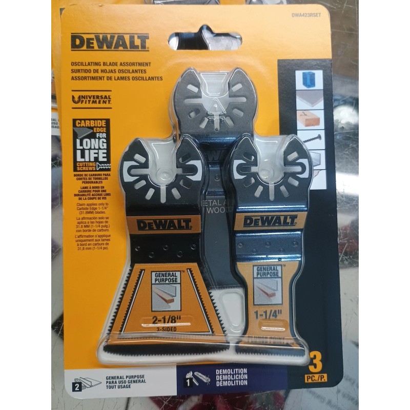 The DeWalt 3 PC Oscillating Blade Assortment (model: DeWalt Dwa42rset) is a high-quality set of saw blades designed for various cutting and sanding tasks. With the brand's reputation for durability and reliability, these blades are sure to meet the needs of DIY enthusiasts and professionals alike. The assortment of blades included in the set makes it versatile for a range of projects around the home and garden. Perfect for those who require precision cutting and efficient sanding results, this DeWalt blade set is a valuable addition to any workshop or tool collection.