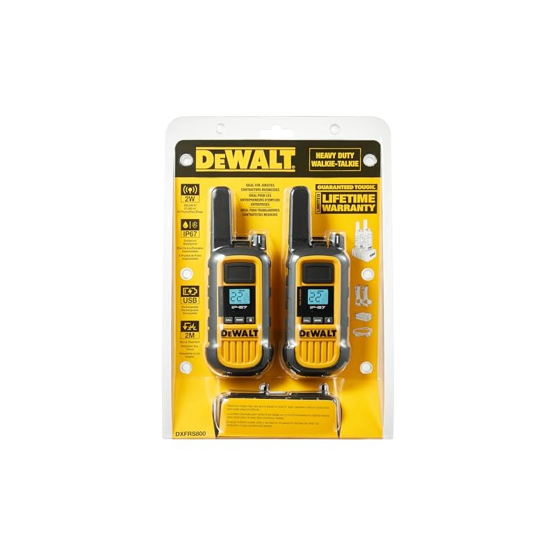 DEWALT DEWALT DXFRS800 2 Watt Heavy Duty Walkie Talkies - Waterproof, Shock Resistant, Long Range & Rechargeable Two-Way Radio with VOX (2 Pack)
