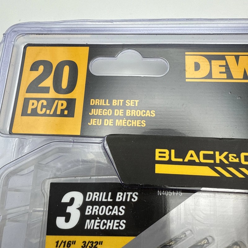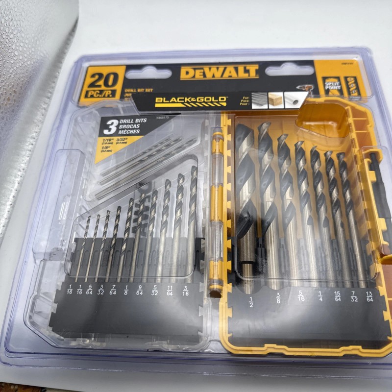 The DEWALT DW1177 Drill Bit Set includes 20 pieces of black drill bits designed for versatile use in various drilling applications. As a product from the well-known brand DEWALT, users can expect high-quality and durability in these drill bits. The set is ideal for home and garden projects, as well as for use in workshops with power tools, making it a versatile addition to any toolkit.