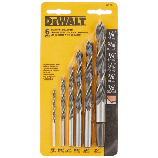 DEWALT Drill Bit Set, Brad Point, 6-Piece (DW1720) , Black
