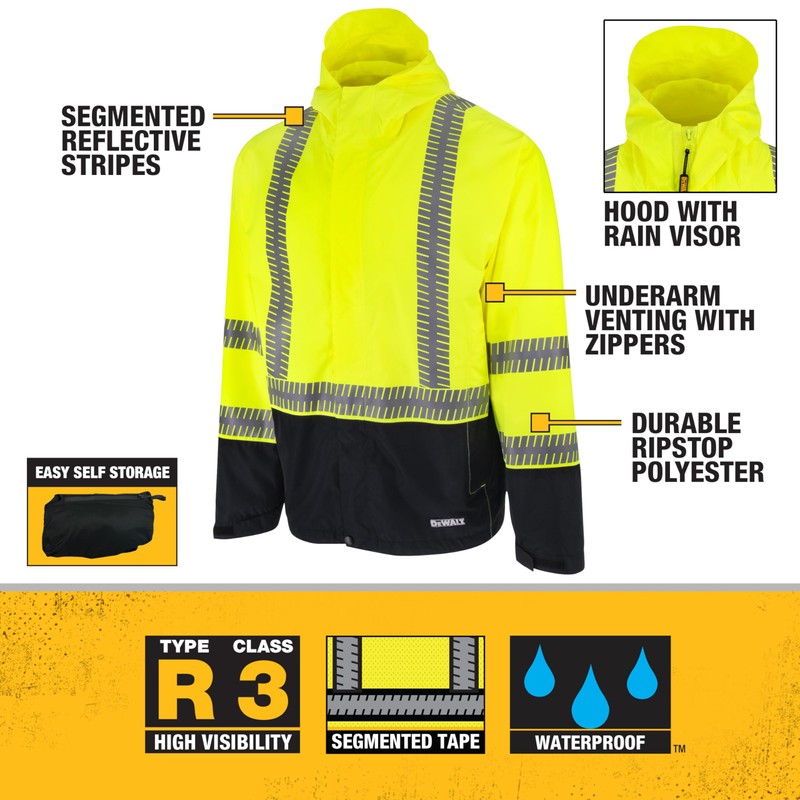 DEWALT DRW21-3 Lightweight Class 3 Ripstop Wind and Rain Jacket - Hi-Vis Green, Size XL