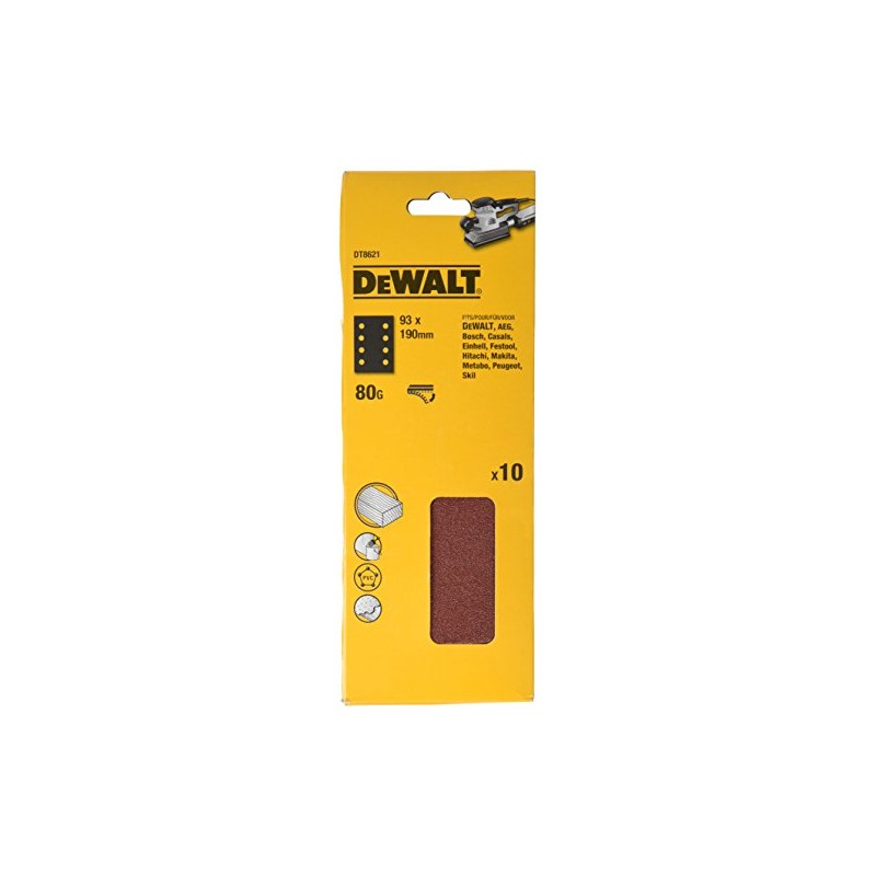 Dewalt Velcro Sandpaper DT8621 (for Vibration Sander, 93 x 190 mm, K80, Perforated, for All Base, Between and Final Sanding Applications on Wood Paints and Varnishes) Pack of 10