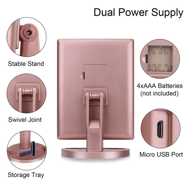 • Built in pcs LED lights, which is intelligent to adjust brightness by touch sensor switch, long press to dimmer the light.You can make up you in poorly light, without disturbing others.