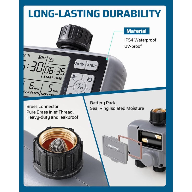 DEWENWILS 3 Zone Sprinkler Timer, Outdoor Water Timer, Programmable Hose Faucet Controller, Automatic Garden Watering System for Garden, Lawn, Yard