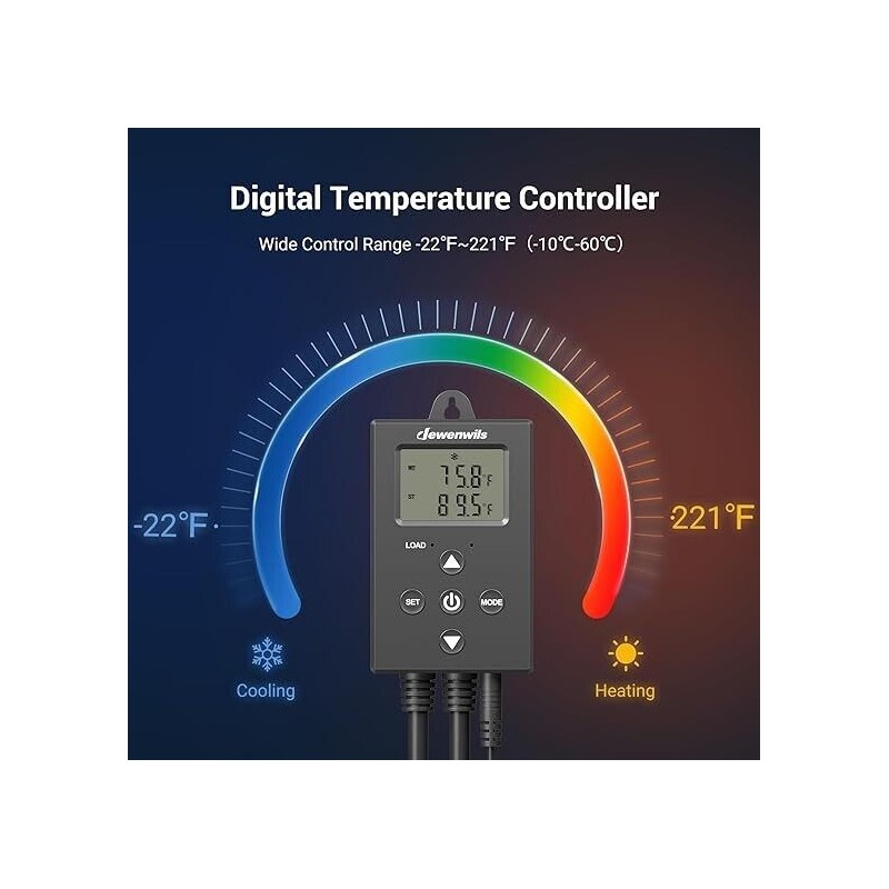 - 【Easy to Mount & Operate】Plug and play, heating and cooling modes are available, simple to program, 14℉~140℉/-10°C-60°C temperature control range make it suitable for extreme conditions in summer or winter, keep the desired temperature constant and steady within the parameters you established