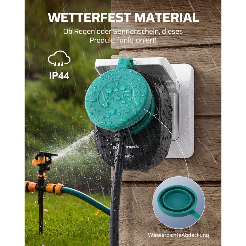 - IP44 waterproof: IP44 waterproof, the rubber lid protects the closed devices from splashing water, suitable for indoor and outdoor use as well as in the garden or on the patio
