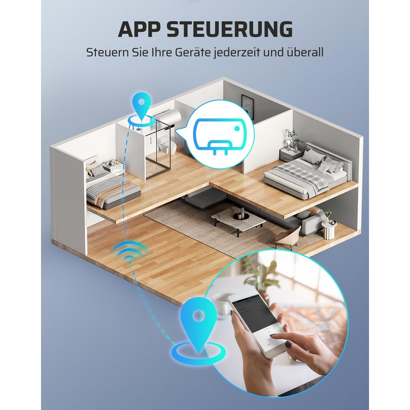 - Timer function: the connected devices work according to your schedule, making your life convenient. You can also create a group and share it with your family via a WiFi network, practical and energy-saving