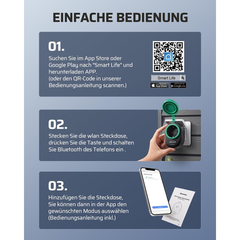 - Easy installation: Download the Smart Life app, then register following the instructions; connect to the 2.4 GHz WiFi network in the house and then add the devices; no hub or accessories required