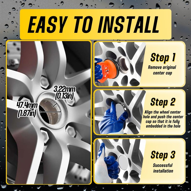 - Tips: Please confirm whether this product is suitable you can confirm by measuring the size of the original hub center cover or hub hole as long as the error is within 0.5 mm it is suitable for your hub