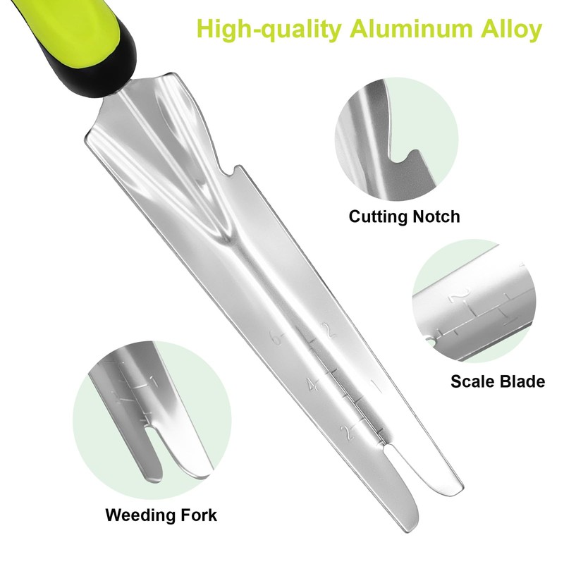 - 【Digging and Measuring Plants】Hand shovels can help with digging and can be used to measure depth with markers without damaging plant roots. Hand trowel is designed with additional serrations on the sides, which can be used to cut fine branches.