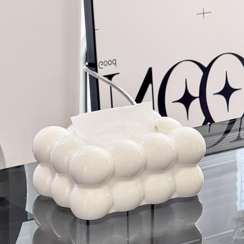 The Understated Luxury Tissue Box radiates an aura of calm in its soft milky white hue. Its cloud-inspired shape captures the light in a subtle way, reflecting a calm glow that highlights the beauty of simplicity and illustrates its presence.