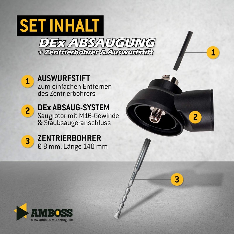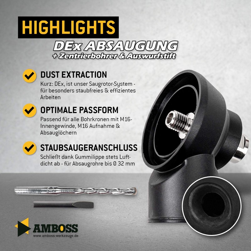 Dust extraction compatible with Anvil Red Force socket core diameter 68 mm / 82 mm. Clean and safe working.