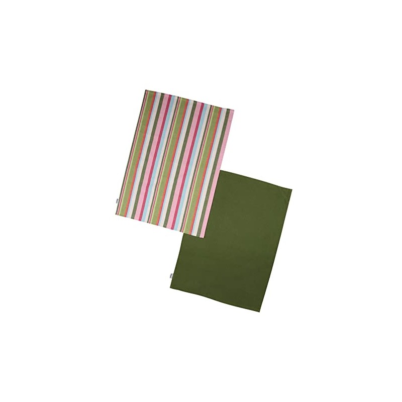 Dexam Recycled Cotton Striped Set of 2 Tea Towels - Green