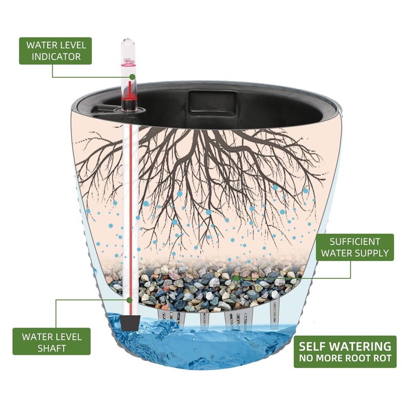 - Drainage System: The design prevents overwatering and underwatering by allowing excess water to drain.