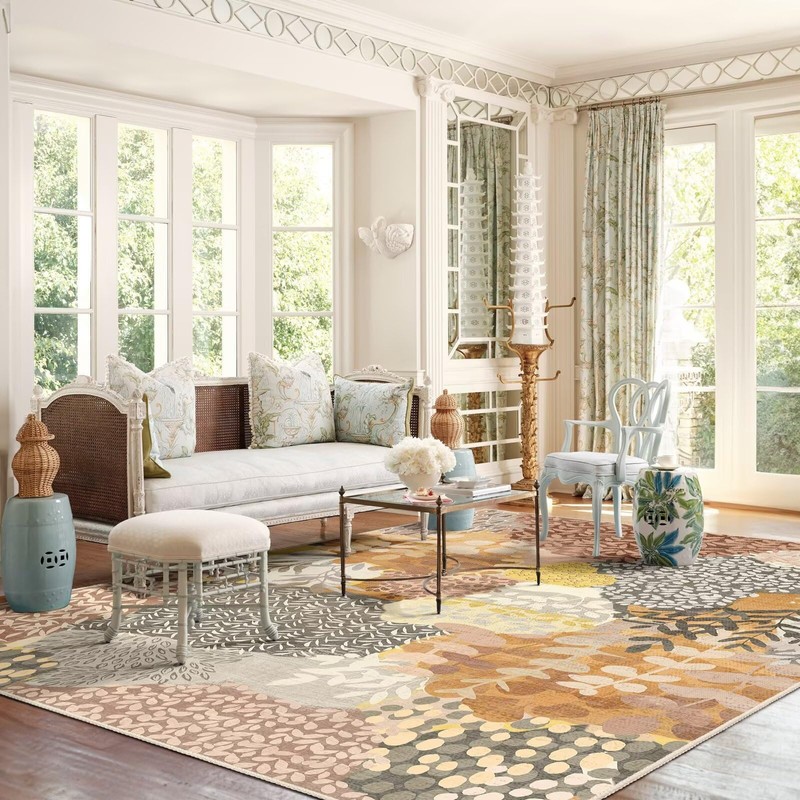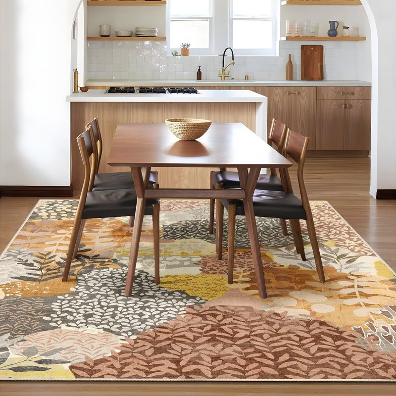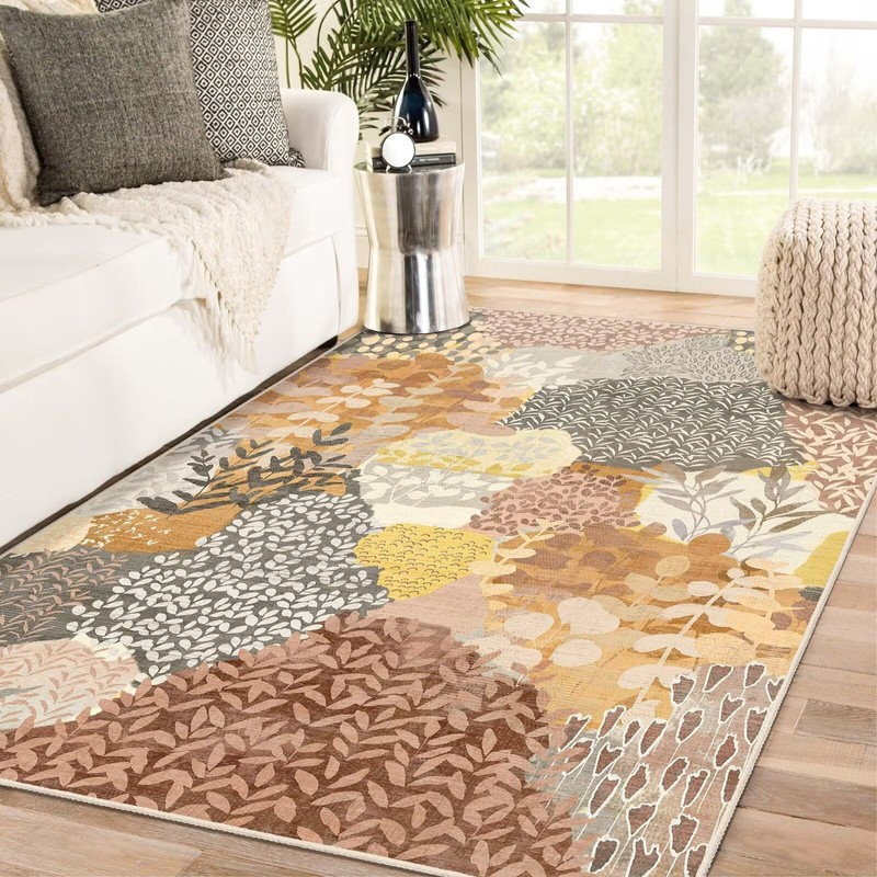 - Washable Botanical Print rug: 5'x7' rug features delicate leaf motifs, reinforced stitched edges, and fade-resistant fabric that survives gentle machine cycles (air-dry or low heat). Note: Do not use bleach to clean