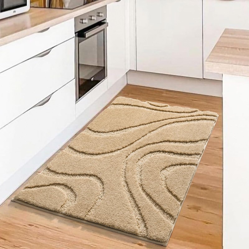 DEXDE Bathroom Rugs Mat, Soft Plush Shaggy Microfiber Bath Rug, Non Slip Bath Mats for Bathroom Floor, Machine Washable Absorbent Carpet for Shower Tub, Beige 20"x32"