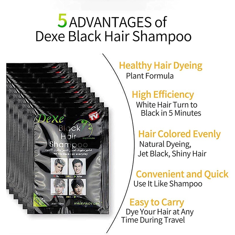 Dexe Instant Black Hair Shampoo, Hair Dye Shampoo for Men and Women, Easy to ...