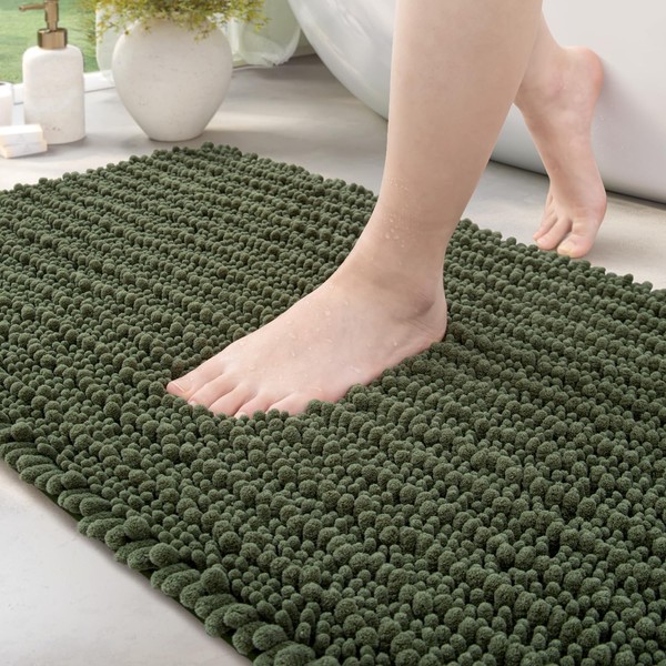 DEXI Chenille Bathroom Mat 40 x 60 cm, Thick Soft Absorbent Mats, Non-slip Washable Rugs, Bath Accessories Decor, Green