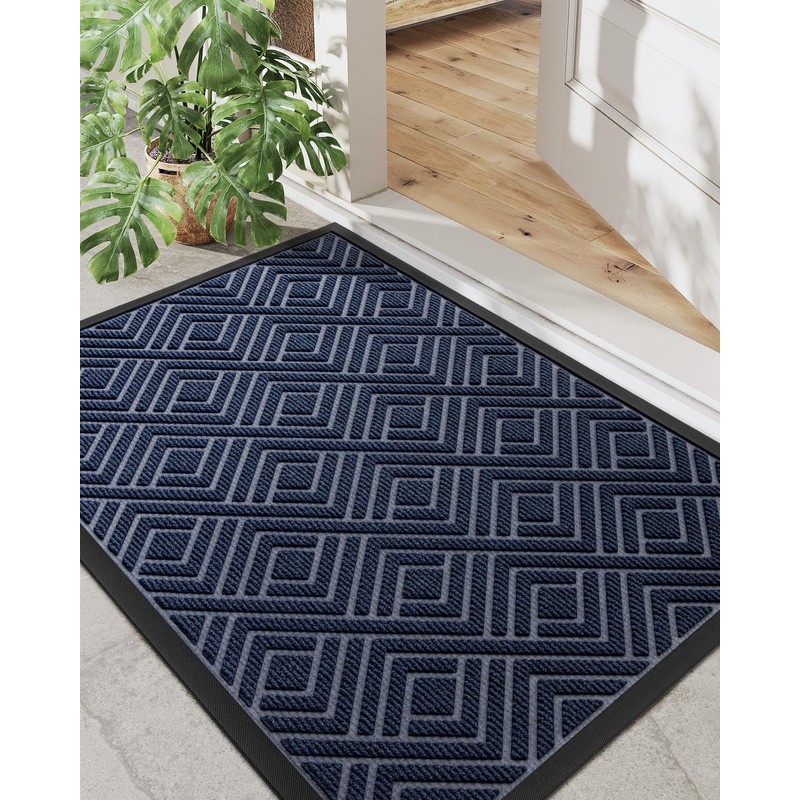DEXI Door Mat Heavy Duty Outdoor Indoor Doormat, Stain and Fade Resistant, Non Slip Front Door Mats, Patio Entryway Floor Mat, 2'x3', Checkered Navy