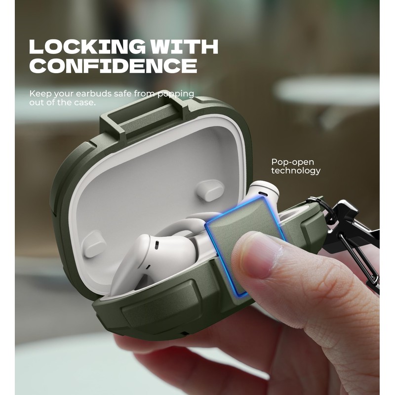 - Secure locking mechanism: Equipped with a sturdy pop-open locking latch, this shockproof case keeps your Powerbeats Pro 2 securely in place, ensuring they won’t fall out even during the toughest drops and bumps.
