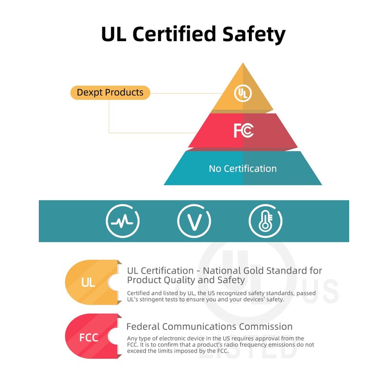 - Safety - Certified and listed by UL, the US recognized safety standards, passed UL's stringent tests to ensure you and your devices' safety.