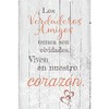 "Los Verdaderos Amigos nunca son olvidados. Viven en nuestro corazón." The words are beautifully displayed on this elegant plaque.