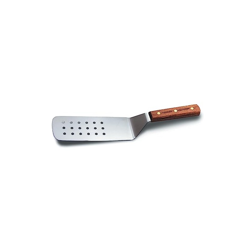 - Dexter Russell PS8698 Traditional (16330) Perforated Turner, 8" x 3", stainless steel, offset blade, rosewood handle, Made in USA