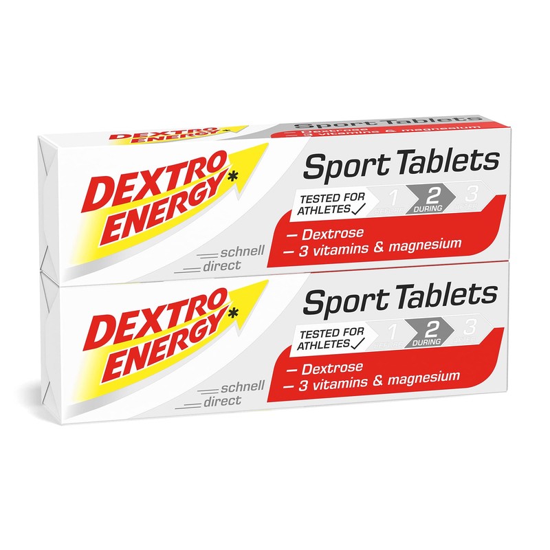 - Box contents: pack of 2 (2 x 47 g) Dextro Energy Sport Dextrose tablets, each with 2 bars of 14 tabs, with vitamins and magnesium, vegan, gluten-free and lactose-free