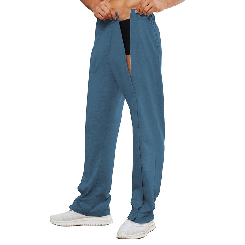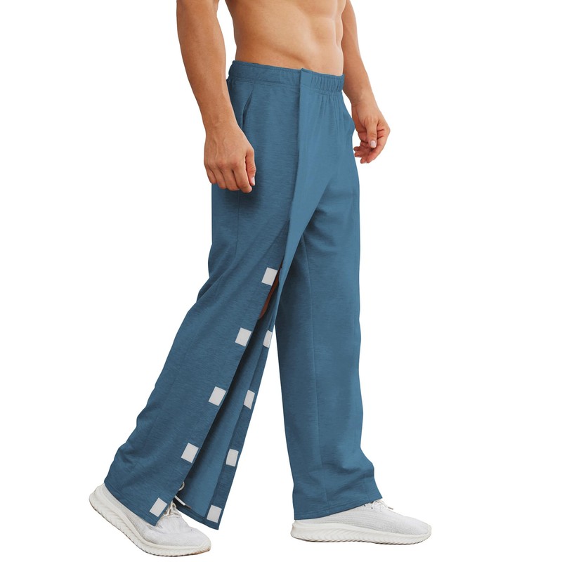Deyeek Tear Away Pants for Men 2 Side Snap Full Open Bottom Athletic Sweatpants Soft Post Surgery Pants with Pockets L Sea Blue