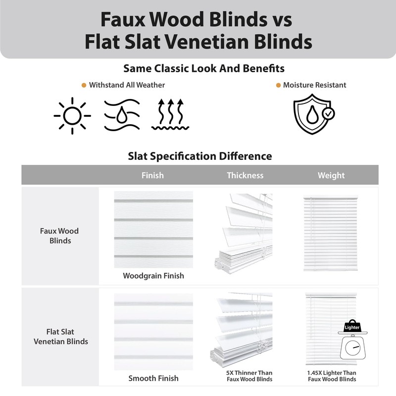 • Versatility: An excellent alternative to traditional wood, or faux wood blinds. Perfect upgrading option for commercial projects. Known for their durability and resistance to moisture, our blinds are suitable for kitchens, bathrooms, and offices.