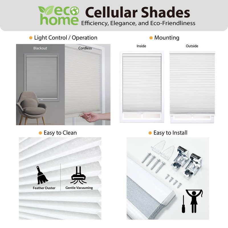 - Sleek Cordless Easy Operation: Enjoy a modern and clutter-free experience with cordless mechanisms, offering easy operation and a sleek look. Mount the cellular shade inside or outside the window frame for a contemporary aesthetic.