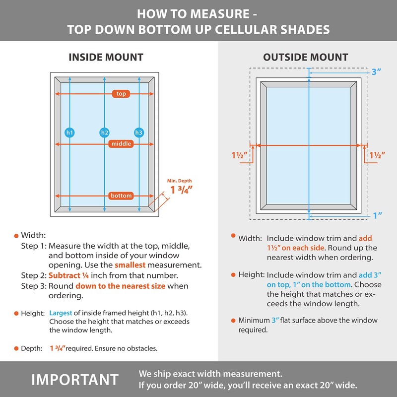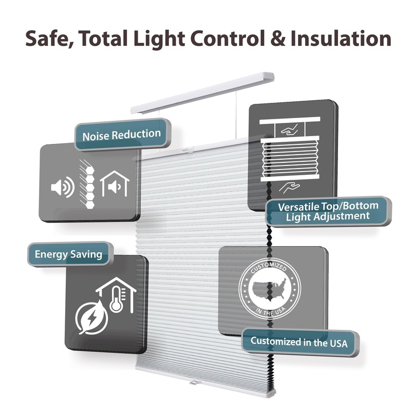 - Lighting and Privacy Solution: Top Down Bottom Up Cellular Shades offer optimal balance for bedrooms and bathrooms, ensuring natural lighting and substantial privacy. Cordless mechanisms provide a sleek, clutter-free experience.